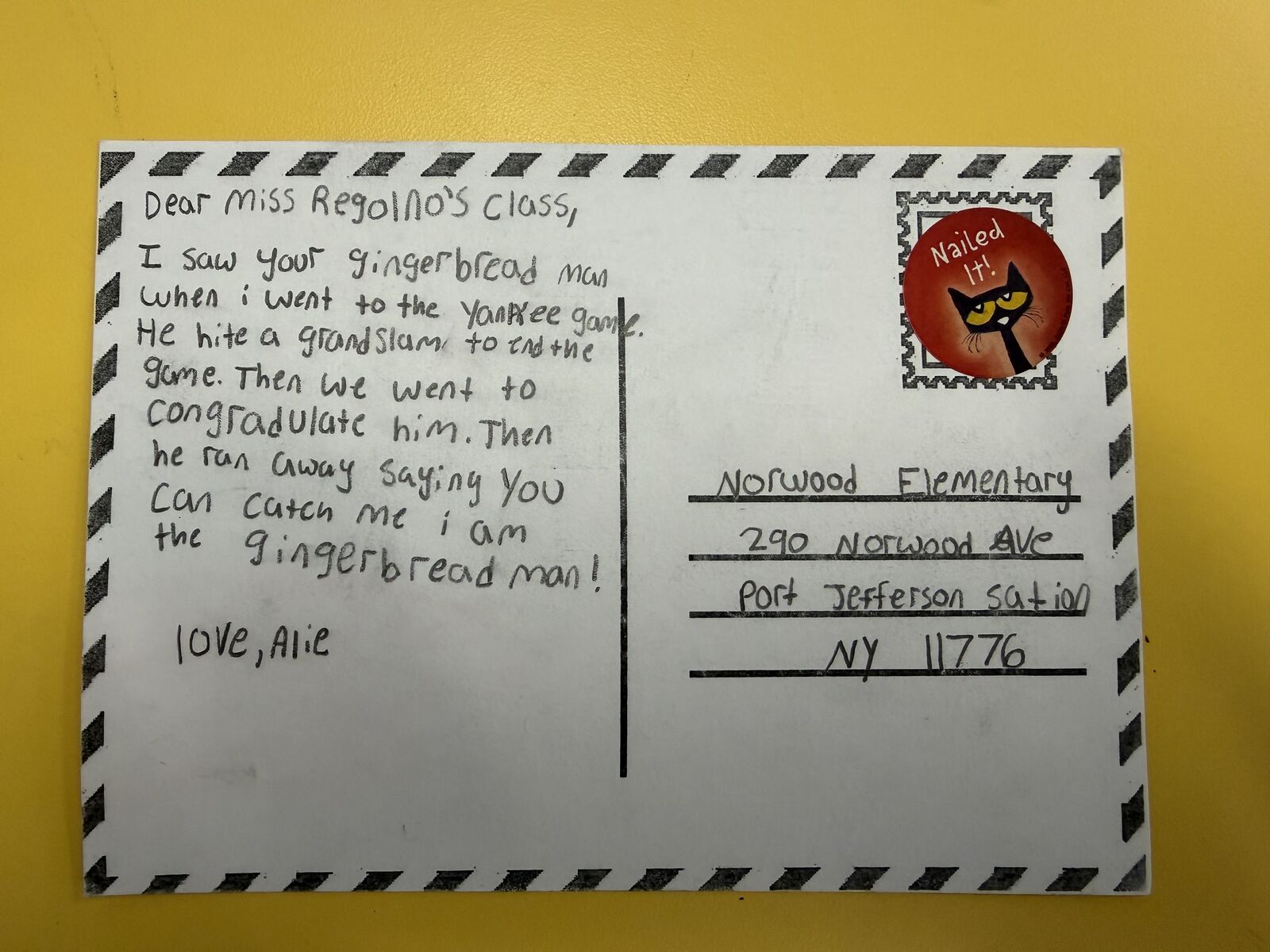 Remember when Ms. Regolino’s first grade class at Norwood baked their Gingerbread cookie and it ran away? Since then, lots of our students, staff and community members have seen him in the area and...